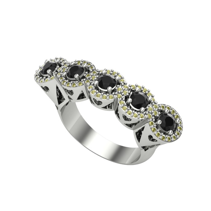 Siyah zirkon ve peridot 8 ayar beyaz altın yüzük