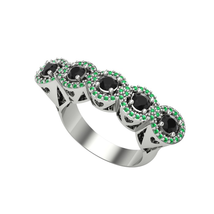 Siyah zirkon ve yeşil kuvars 14 ayar beyaz altın yüzük