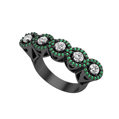 Swarovski ve yeşil kuvars 925 ayar siyah rodyum kaplama gümüş yüzük