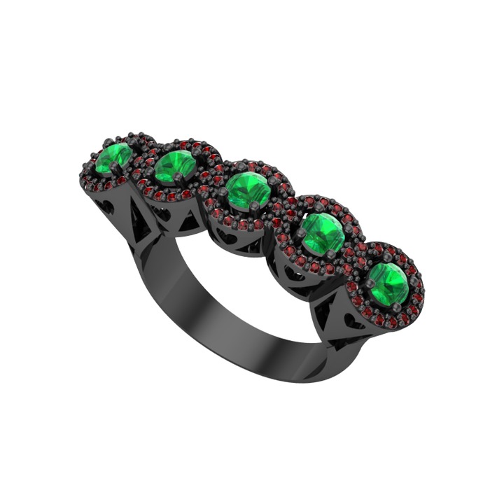 Yeşil kuvars ve garnet 925 ayar siyah rodyum kaplama gümüş yüzük