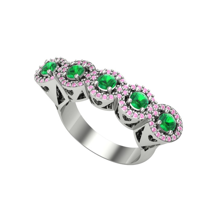 Yeşil kuvars ve pembe kuvars 8 ayar beyaz altın yüzük