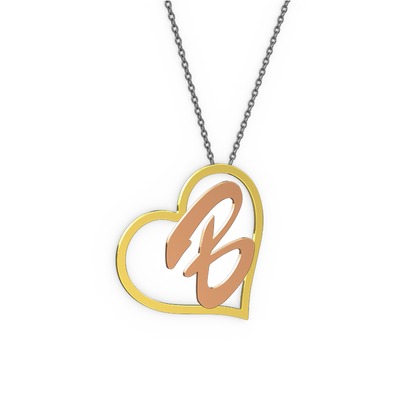 Kalpli İsim Kolye - 14 ayar altın kolye (1 karakterli el yazısı, 40 cm gümüş rolo zincir)