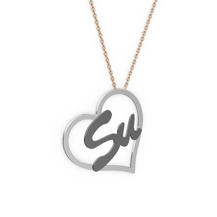 18 ayar beyaz altın kolye (2 karakterli el yazısı, 40 cm rose altın rolo zincir)