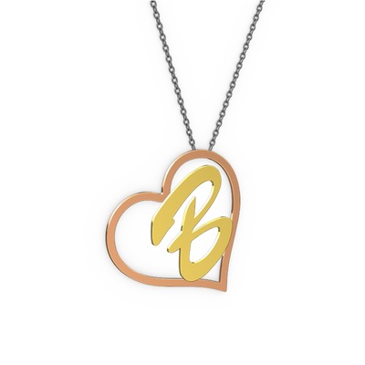 18 ayar rose altın kolye (1 karakterli el yazısı, 40 cm gümüş rolo zincir)