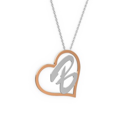 18 ayar rose altın kolye (1 karakterli el yazısı, 40 cm gümüş rolo zincir)