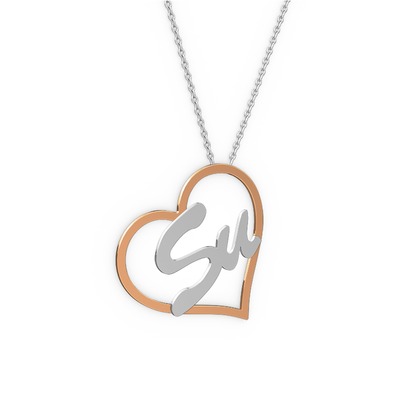 18 ayar rose altın kolye (2 karakterli el yazısı, 40 cm beyaz altın rolo zincir)