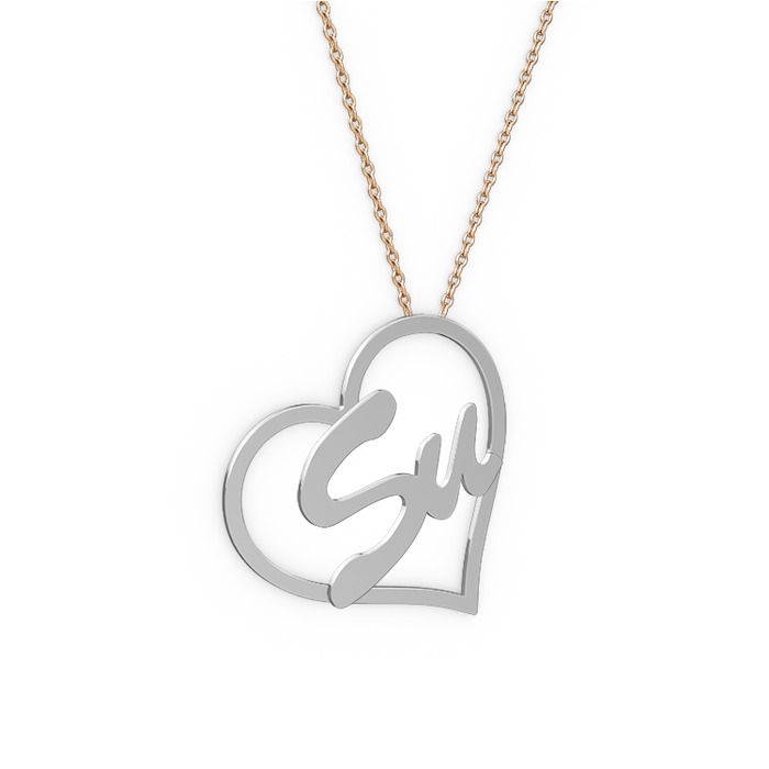 8 ayar beyaz altın kolye (2 karakterli el yazısı, 40 cm rose altın rolo zincir)