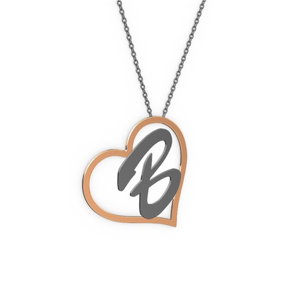 8 ayar rose altın kolye (1 karakterli el yazısı, 40 cm gümüş rolo zincir)