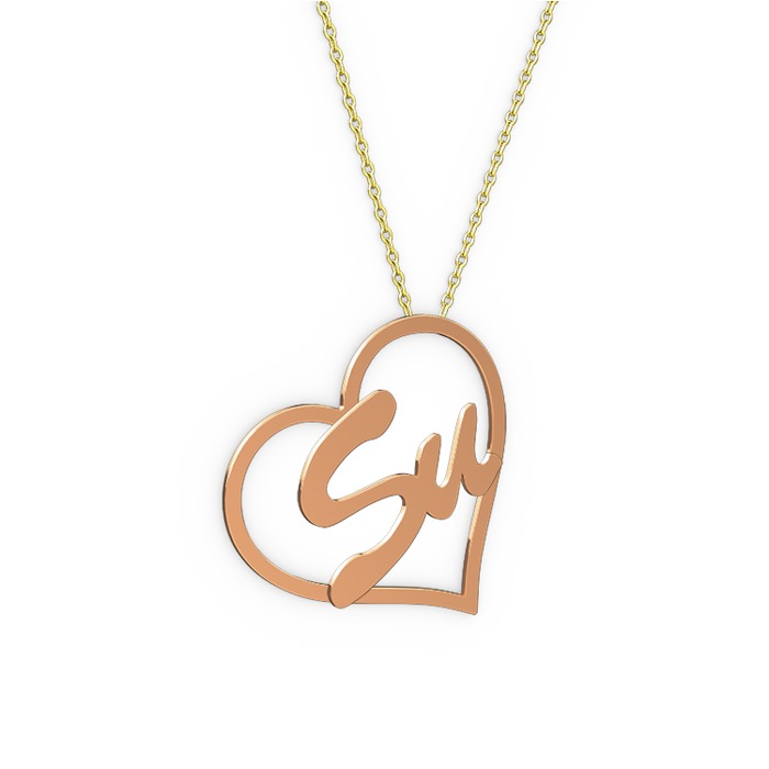 8 ayar rose altın kolye (2 karakterli el yazısı, 40 cm altın rolo zincir)