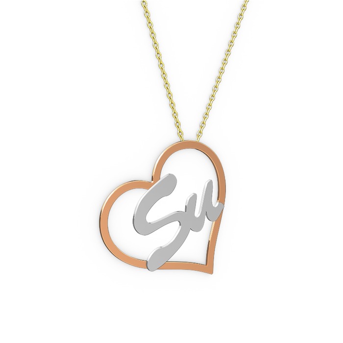 8 ayar rose altın kolye (2 karakterli el yazısı, 40 cm gümüş rolo zincir)
