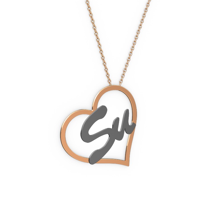 8 ayar rose altın kolye (2 karakterli el yazısı, 40 cm rose altın rolo zincir)