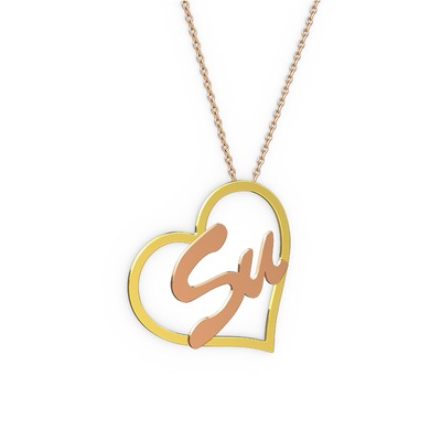 925 ayar altın kaplama gümüş kolye (2 karakterli el yazısı, 40 cm rose altın rolo zincir)
