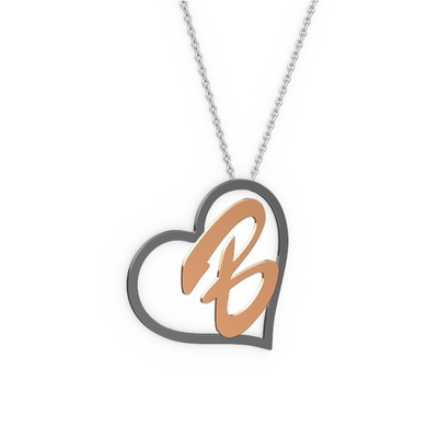 925 ayar siyah rodyum kaplama gümüş kolye (1 karakterli el yazısı, 40 cm beyaz altın rolo zincir)