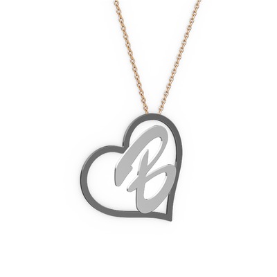 925 ayar siyah rodyum kaplama gümüş kolye (1 karakterli el yazısı, 40 cm rose altın rolo zincir)