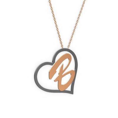 925 ayar siyah rodyum kaplama gümüş kolye (1 karakterli el yazısı, 40 cm rose altın rolo zincir)