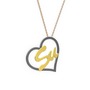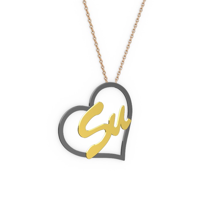 925 ayar siyah rodyum kaplama gümüş kolye (2 karakterli el yazısı, 40 cm rose altın rolo zincir)