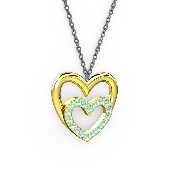 Akuamarin 18 ayar altın kolye (40 cm gümüş rolo zincir)