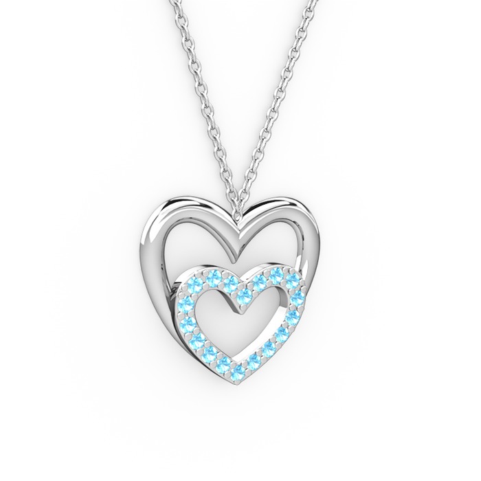 Akuamarin 18 ayar beyaz altın kolye (40 cm beyaz altın rolo zincir)