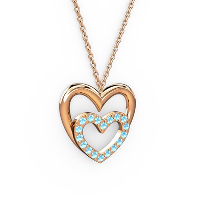 Akuamarin 18 ayar rose altın kolye (40 cm rose altın rolo zincir)