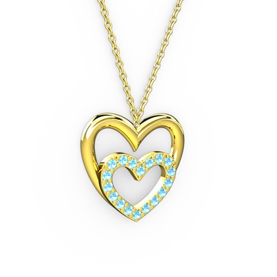 Akuamarin 925 ayar altın kaplama gümüş kolye (40 cm gümüş rolo zincir)