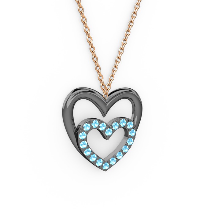 Akuamarin 925 ayar siyah rodyum kaplama gümüş kolye (40 cm gümüş rolo zincir)