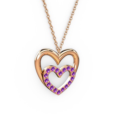 Ametist 14 ayar rose altın kolye (40 cm rose altın rolo zincir)