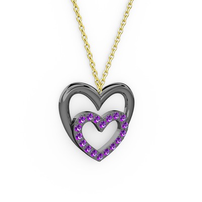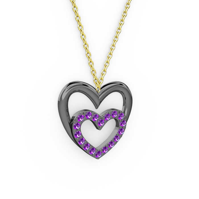 Ametist 925 ayar siyah rodyum kaplama gümüş kolye (40 cm altın rolo zincir)