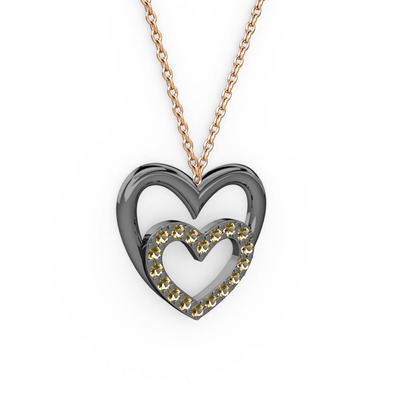 Dumanlı kuvars 925 ayar siyah rodyum kaplama gümüş kolye (40 cm rose altın rolo zincir)