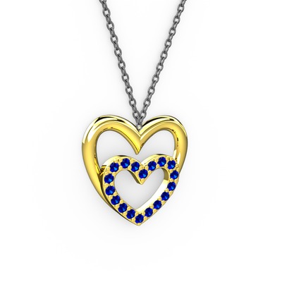 Lab safir 14 ayar altın kolye (40 cm gümüş rolo zincir)
