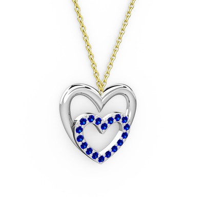 Lab safir 14 ayar beyaz altın kolye (40 cm altın rolo zincir)