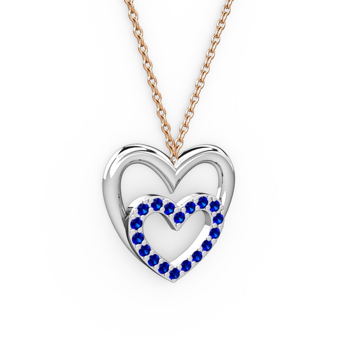 Lab safir 18 ayar beyaz altın kolye (40 cm rose altın rolo zincir)