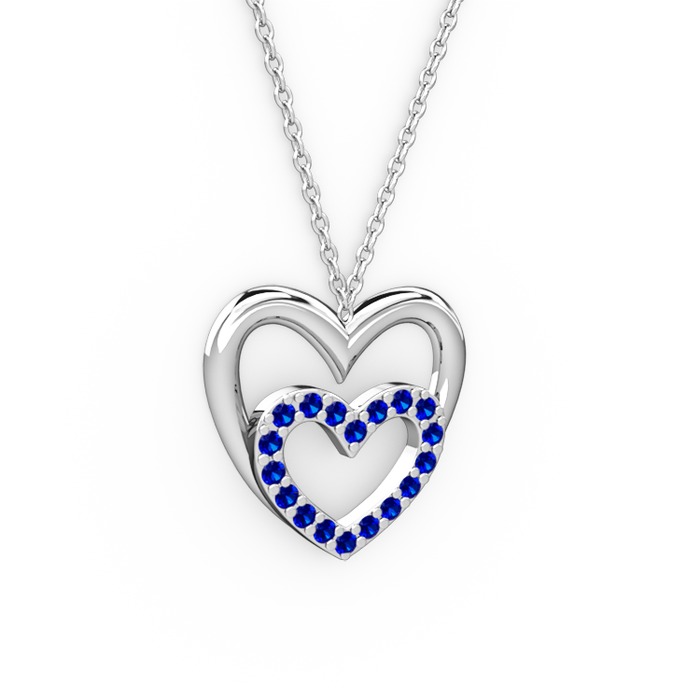 Lab safir 8 ayar beyaz altın kolye (40 cm gümüş rolo zincir)