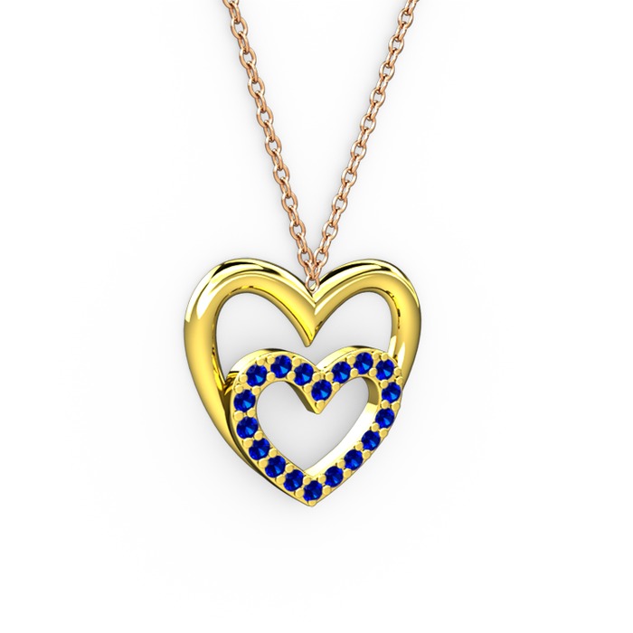 Lab safir 925 ayar altın kaplama gümüş kolye (40 cm gümüş rolo zincir)