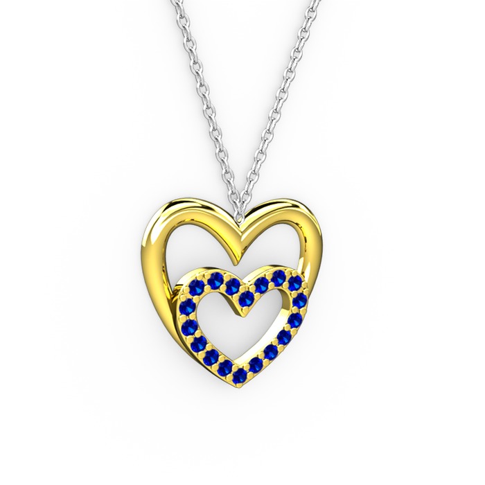 Lab safir 925 ayar altın kaplama gümüş kolye (40 cm gümüş rolo zincir)