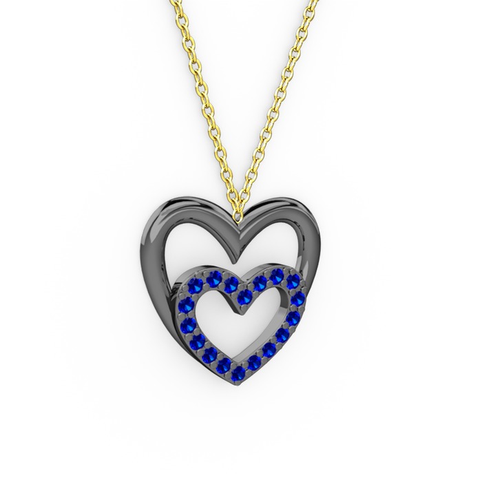 Lab safir 925 ayar siyah rodyum kaplama gümüş kolye (40 cm altın rolo zincir)