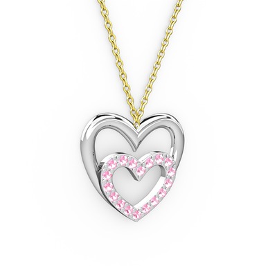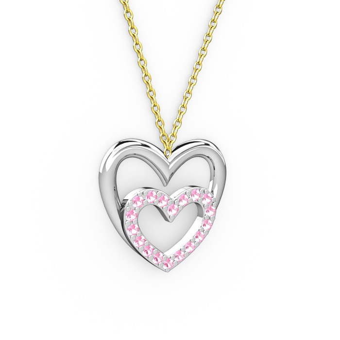 Pembe kuvars 14 ayar beyaz altın kolye (40 cm altın rolo zincir)