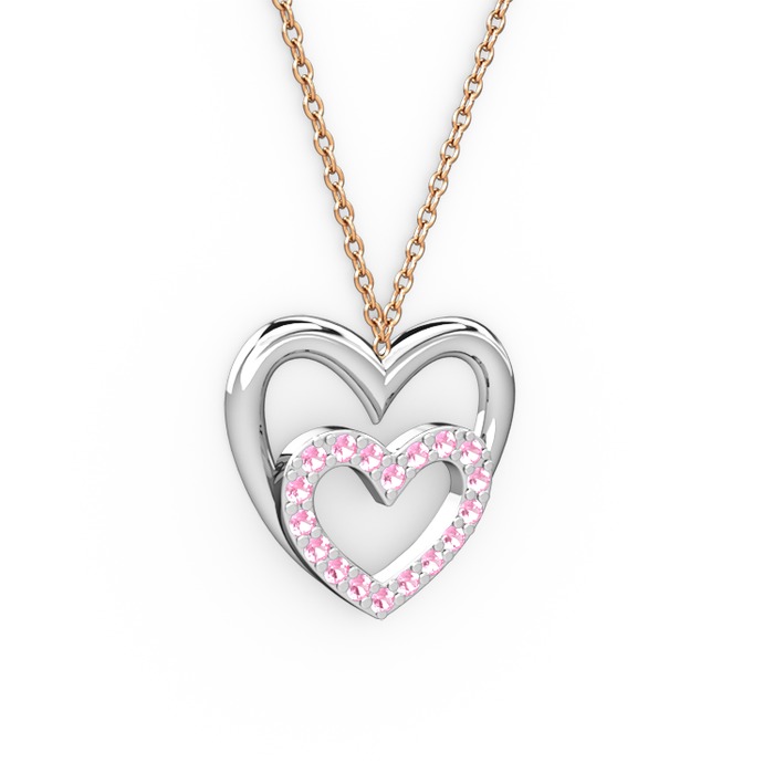 Pembe kuvars 18 ayar beyaz altın kolye (40 cm gümüş rolo zincir)