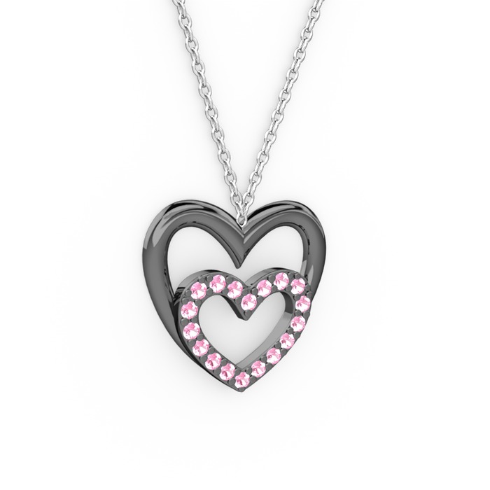 Pembe kuvars 925 ayar siyah rodyum kaplama gümüş kolye (40 cm beyaz altın rolo zincir)