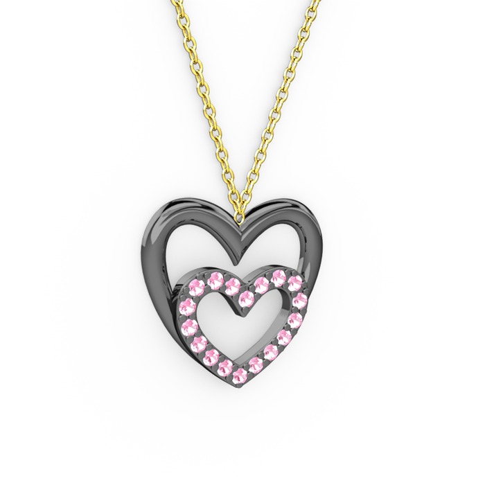 Pembe kuvars 925 ayar siyah rodyum kaplama gümüş kolye (40 cm gümüş rolo zincir)