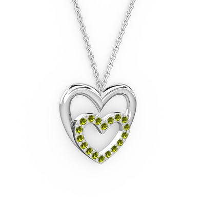 Peridot 18 ayar beyaz altın kolye (40 cm beyaz altın rolo zincir)