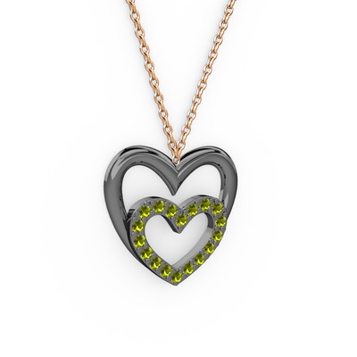 Peridot 925 ayar siyah rodyum kaplama gümüş kolye (40 cm rose altın rolo zincir)