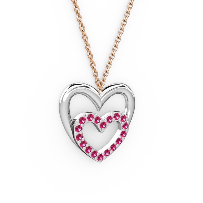 Rodolit garnet 8 ayar beyaz altın kolye (40 cm rose altın rolo zincir)