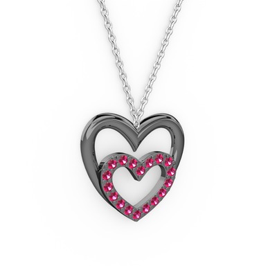 Rodolit garnet 925 ayar siyah rodyum kaplama gümüş kolye (40 cm beyaz altın rolo zincir)