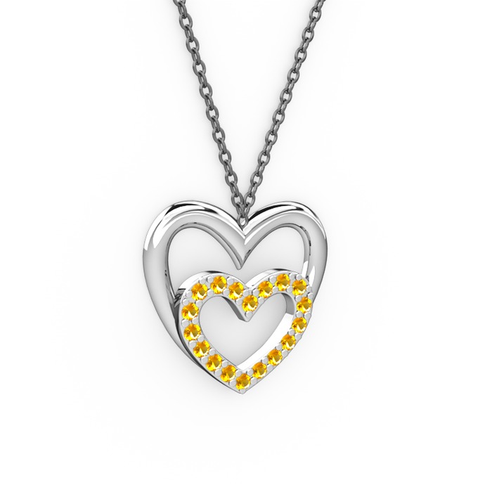 Kalpli Kolye - Sitrin 18 ayar beyaz altın kolye (40 cm gümüş rolo zincir)
