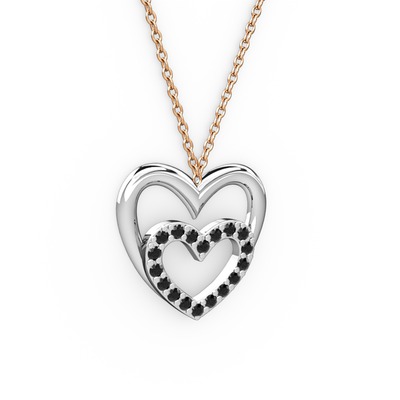 Siyah zirkon 14 ayar beyaz altın kolye (40 cm rose altın rolo zincir)