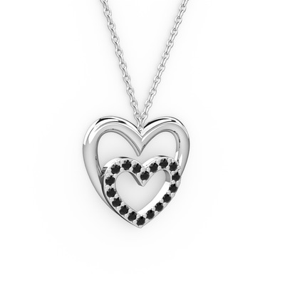 Siyah zirkon 18 ayar beyaz altın kolye (40 cm gümüş rolo zincir)