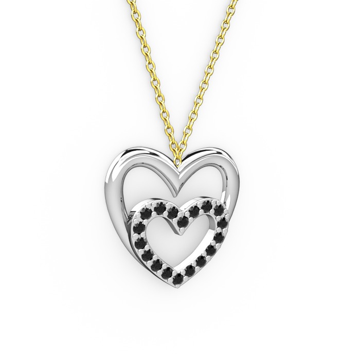 Siyah zirkon 8 ayar beyaz altın kolye (40 cm altın rolo zincir)