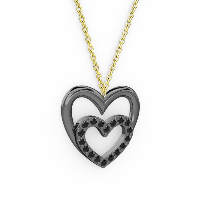 Siyah zirkon 925 ayar siyah rodyum kaplama gümüş kolye (40 cm gümüş rolo zincir)