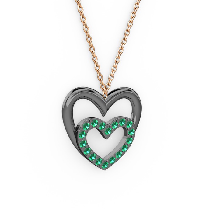 Yeşil kuvars 925 ayar siyah rodyum kaplama gümüş kolye (40 cm rose altın rolo zincir)
