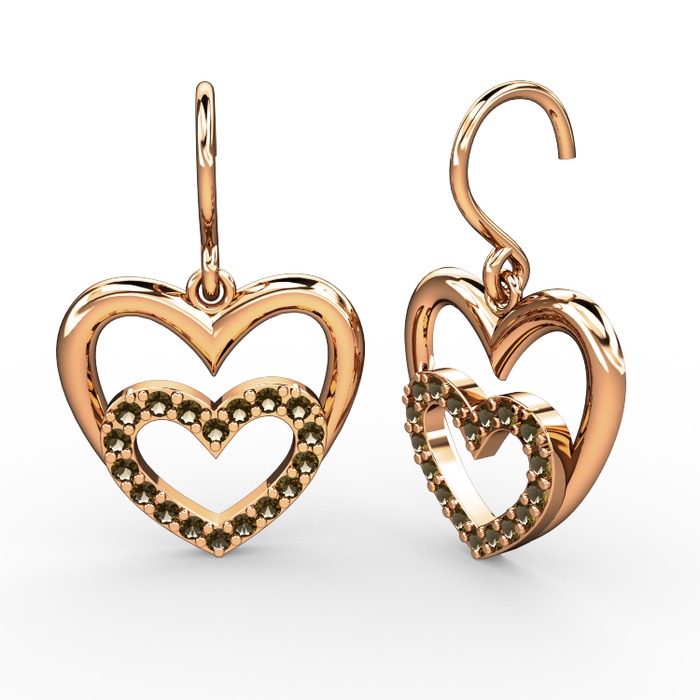 Dumanlı kuvars 18 ayar rose altın küpe